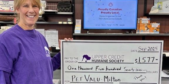 Upper Credit Humane Society would like to extend the biggest thank you to all the community members who donated to Pet Valu's “Buy a Paw, Help a Pet” campaign! Your donations totaled $1,074! Extra thanks to the Staff at the Main Street, Milton store who are pawesome!