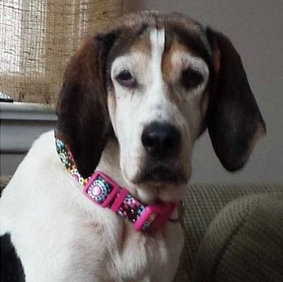 Eden is a senior hound who arrived at UCHS on Nov. 5, 2016. She was surrendered to Animal Control because she kept getting out of her enclosure. Eden was approximately seven years old when she was picked up. She hadn’t been spayed and her eyes and ears were infected. Eden was very thin, but she was so sweet! She was quiet, easy going and loved every dog she met. She wasn’t too energetic and was a dream on the leash.